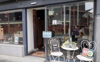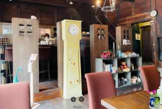 京王線府中駅改札を出て、大國魂神社に向かいます。大國魂神社入り口を右に曲がり、直進すると「府中市役所前」の信号機がありそのまま直進して渡った所が「酒座 中久本店」という造り酒屋があり、その中にあるカフェになります。(府中駅より徒歩7分)